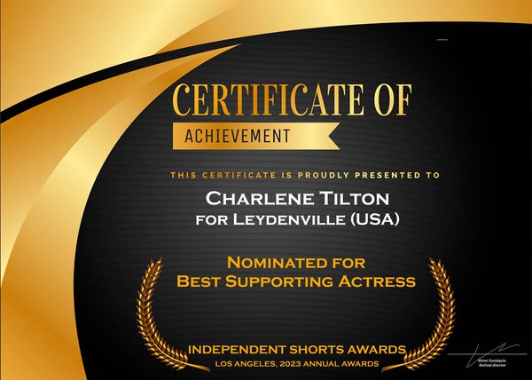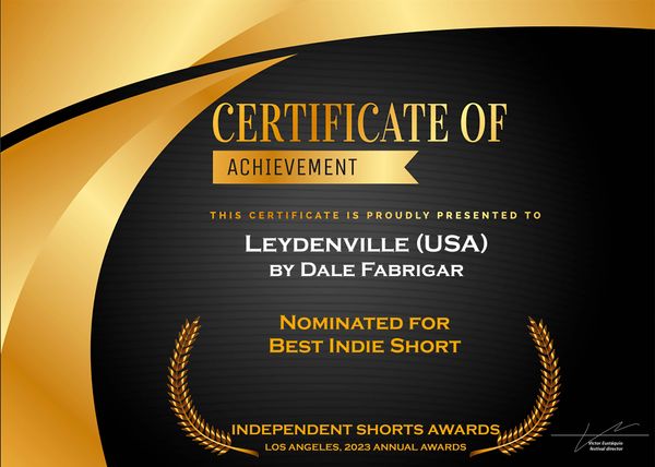 Leydenville is a finalist of 2023 in three categories. Leydenville by Dale Fabrigar (USA), Nominated Best Indie Short category as well as nominated for Best Actor, Tony Stavola and Best Supporting Actress Charlene Tilton.